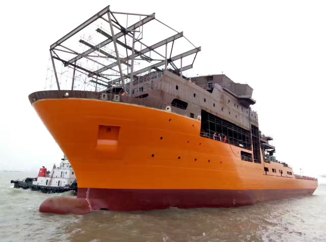 由南通豪通船務(wù)(上海事業(yè)部)在上海振華重工(長(zhǎng)興基地)承接搭載工程的潛水飽和支持船,2017618成功下水!