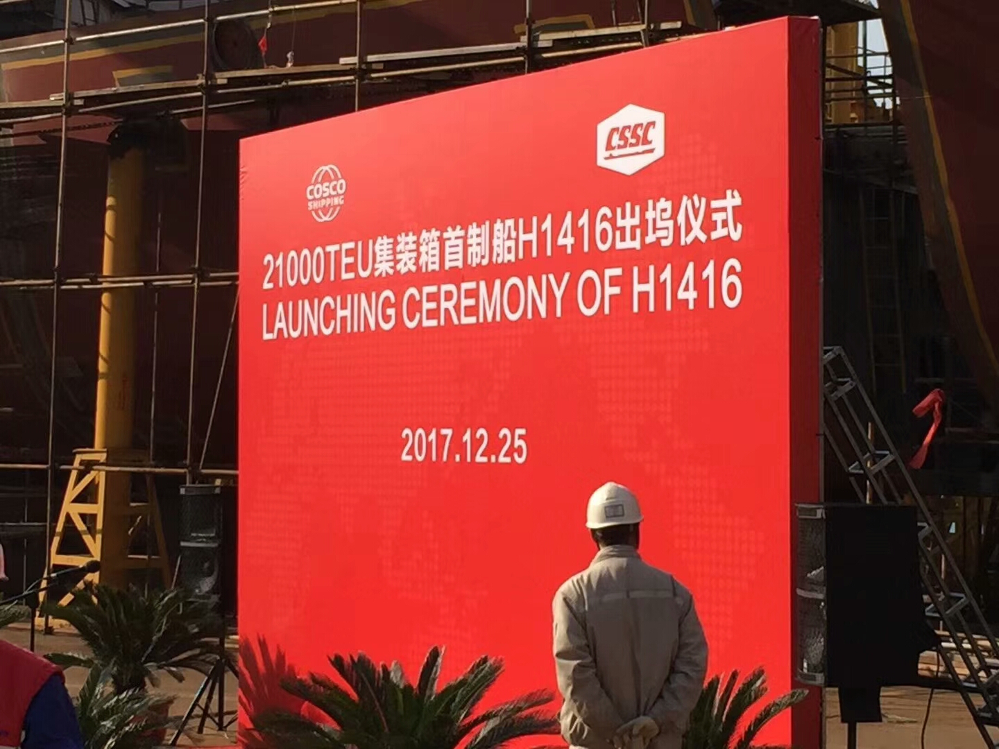 祝賀南通豪通船務(江南事業(yè)部)在上海長興江南重工參與建造的目前世界最大的21000TEU集裝箱(H1416),于201712月25日順利下水!
